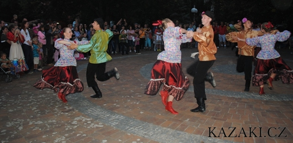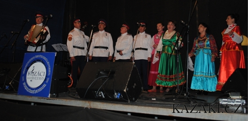 Так же мы выступили на главной праздничной сцене мероприятия (в г.Хлумце) так называемый «Русский блок», который продолжался более 3 часов. С Урала выступили, приглашенный нами, фольклорный танцевальный коллектив «Юность», с Северного Кавказа — «Зори Кубани», а в завершении музыкального вечера, под небольшим дождем, под песни фольклорного ансамбля «Казаки Влтавы» нашего Союза, танцевали и пели гости и жители г.Хлумец. Со слезами на глазах к казакам подходили «Волынские Чехи» которые прожили более 20 лет в Крупке и Хлумце и благодарили нас за выступление.