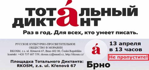 Приглашаем всех на «Тотальный диктант» Дорогие друзья! Русское культурно-просветительное общество РКПОМ приглашает всех желающих принять участие в международном Тотальном диктанте, который состоится 13 апреля в 13 часов в г. Брно на улице KŘENOVA, 67,. Многие в детстве, точнее в школьные[…]