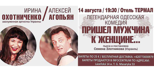 Заказ билетов и доставка +420773030979 Билеты можно приобрести перед отелем ТЕРМАЛ и на рецепции Также билеты продаются: INFOCENTRUM, Lázeňská 14 и T.G.Masaryka 53 Спектакль с интригующим названием «Пришел мужчина к женщине». Беспроигрышный[…]