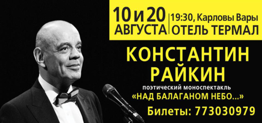КОНСТАНТИН РАЙКИН Поэтический моноспектакль «Над балаганом небо…» 10.08.2018. В 19.30. 20.08.2018. В 19.30. SPA HOTEL THERMAL Билеты можно приобрести в офисах информационного центра Карловы Вары. Художественный руководитель театра «Сатирикон»,[…]